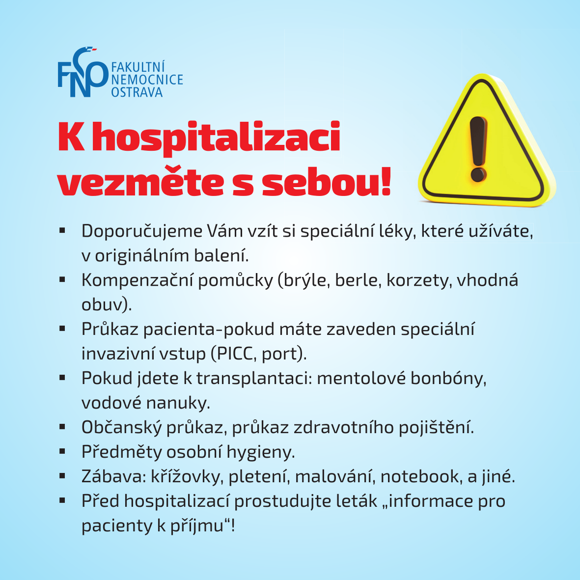 Připravili jsme pro vás několik užitečných informací k vaší hospitalizaci na standardním oddělení a jednotce intenzivní péče Kliniky hematoonkologie.