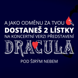Daruj krev v období mezi 15.9.-31.10.2025, zaregistruj se načtením QR kódu, přilož potvrzení o darování krve a tím se dostáváš do slosování o 200 vstupenek na muzikál DRACULA. V Ostravě budou hrát 28.1.2026. Více info na www.dracula30.cz