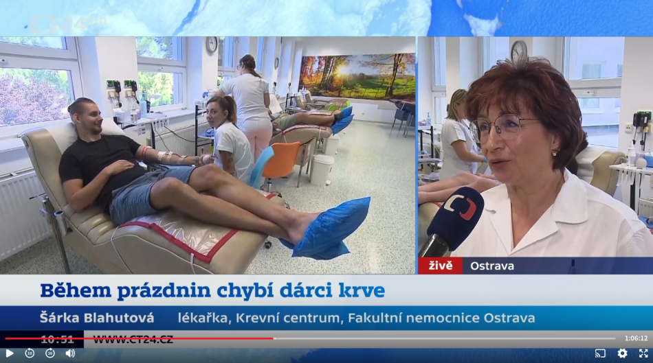 21.7.2025 - Zásoby krve ve FN Ostrava jsou na minimu