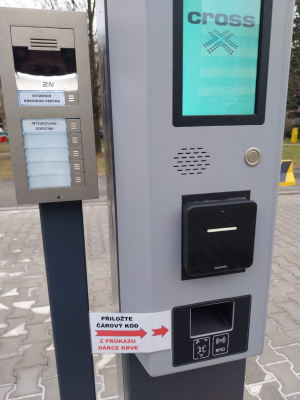 na parkoviště je povolen vjezd dárci pouze v den, na který je objednaný k odběru a to nejdříve 1 hodinu před časem objednání. Závora se zvedne přiložením čarového kódu z Průkazky dárce. Přidělená místa jsou označená na zemi nápisem Vyhrazeno pro dárce krve. Při výjezdu z parkoviště se závora zvedne automaticky.