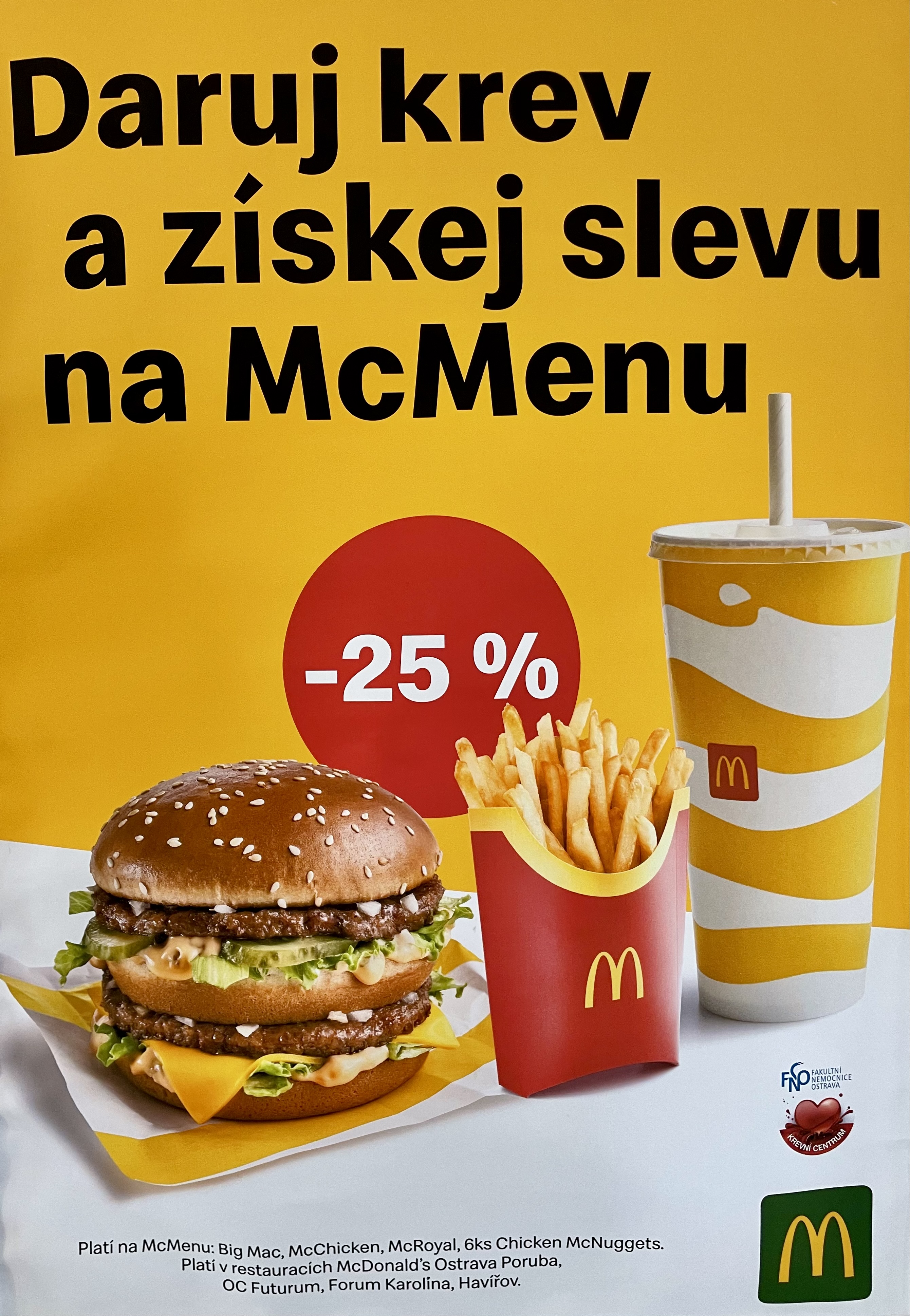 25% sleva na McMenu: Big Mac, McChicken, McRoyal, 6ks Chicken McNuggets.
