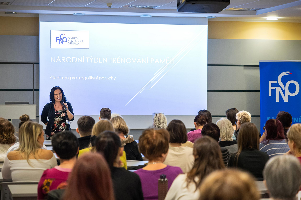 I letos se Fakultní nemocnice Ostrava zapojila do Národního týdne trénování paměti. Zcela zaplněný přednáškový sál Domova sester vyslechl sérií přednášek, které připravilo Centrum pro kognitivní poruchy Neurologické kliniky FNO a LF OU ve spolupráci s odborníky z mnoha oborů. Mezi posluchači byli studenti středních zdravotnických škol i senioři, získali cenné informace týkající se prevence neurologických onemocnění a dozvěděli se také, jak se udržovat v psychické pohodě a jakým způsobem trénovat paměť.