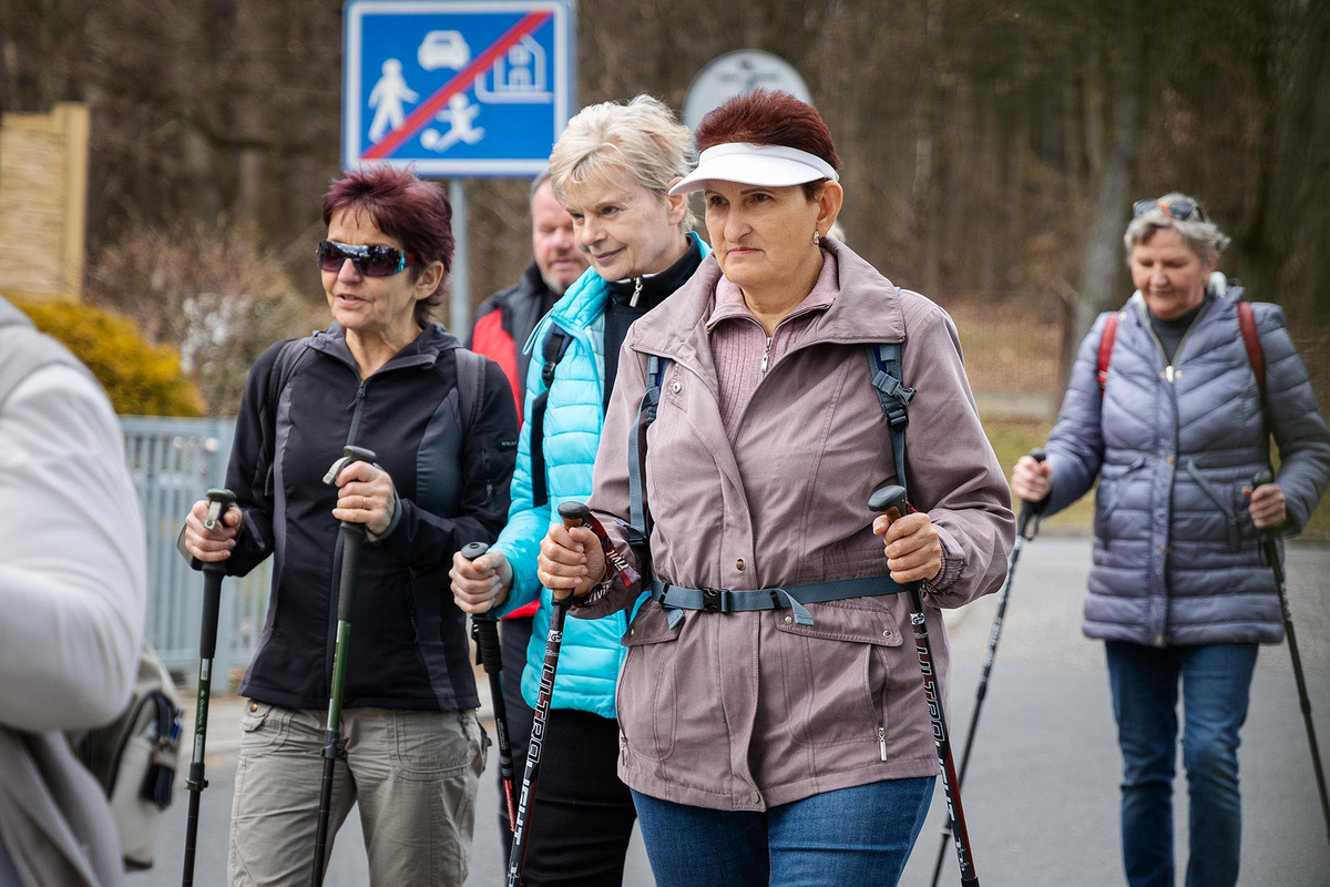 Další akcí v rámci Národního týdne trénování paměti byl i 3. ročník “Pochodu pro mozek“. Téměř tři desítky účastníků doprovodily sestry centra i ergoterapeutky, které zájemcům ukázaly správné nastavení trekových holí a jejich používání při běžné chůzi. V cíli pochodu pak na účastníky čekal zábavný test, zaměřený na znalost českých filmů.