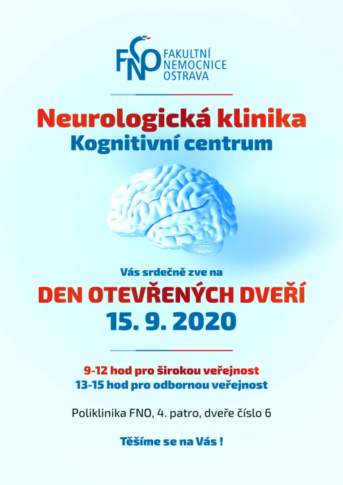 Odborníci Centra pro kognitivní poruchy, které je součástí Neurologické kliniky FN Ostrava, jsou 15. září 2020 připraveni laikům i odborníkům ukázat, jakými formami se dají zlepšovat tzv. kognitivní funkce. Tedy například paměť, pozornost, zrakově - prostorová orientace nebo posuzování a řešení problémů. Za 10 let trvání centra má tým složený z lékařů, psychologů a sester specialistek, s touto problematikou bohaté zkušenosti. Zdravotníci se budou zájemcům z řad veřejnosti věnovat od 9 do 12 hodin, odpolední čas od 13 do 15 hodin je pak vyhrazený odborníkům.