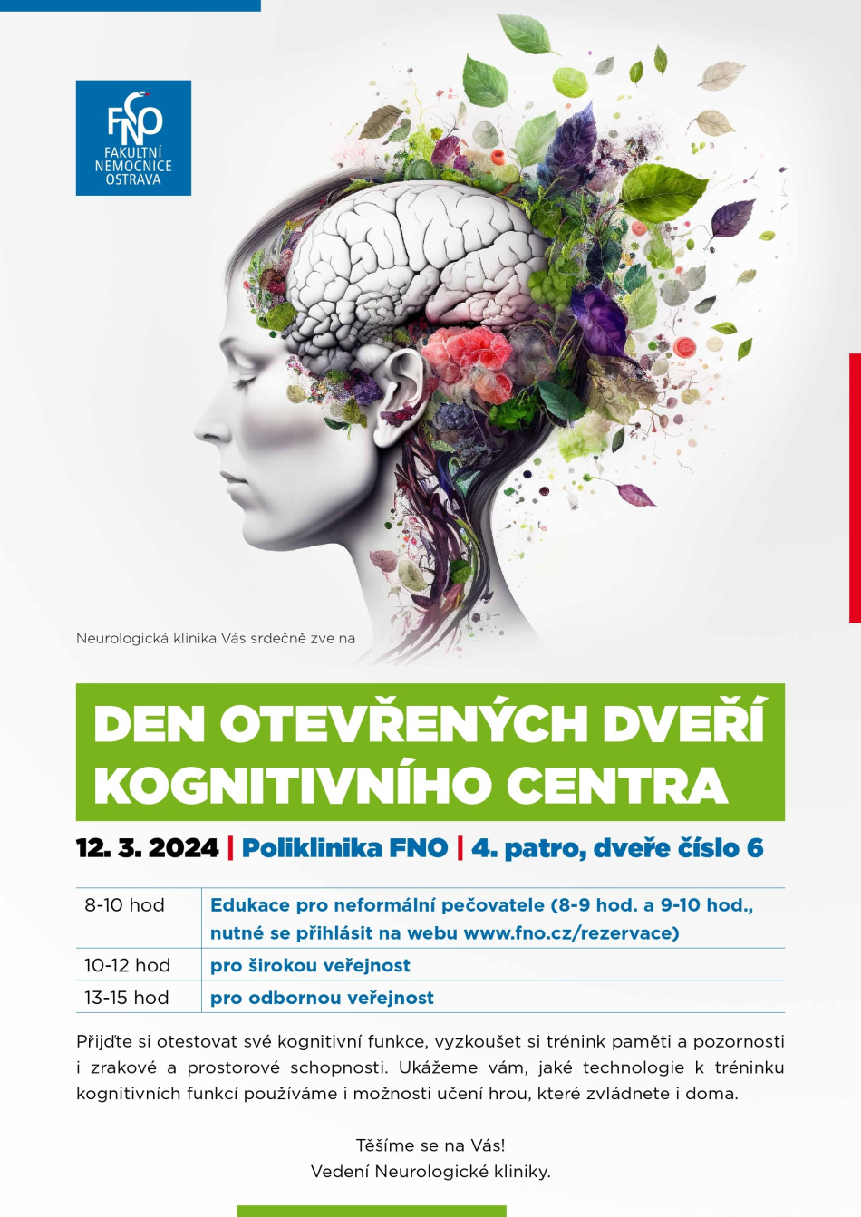 Neurologická klinika FN Ostrava srdečně zve na Den otevřených dveří Kognitivního centra. Přijďte si otestovat své kognitivní funkce, vyzkoušet trénink paměti a pozornosti i zrakové a prostorové schopnosti. Ukážeme vám, jaké techniky k tréninku kognitivních funkcí používáme i možnosti učení hrou, které zvládnete i doma.