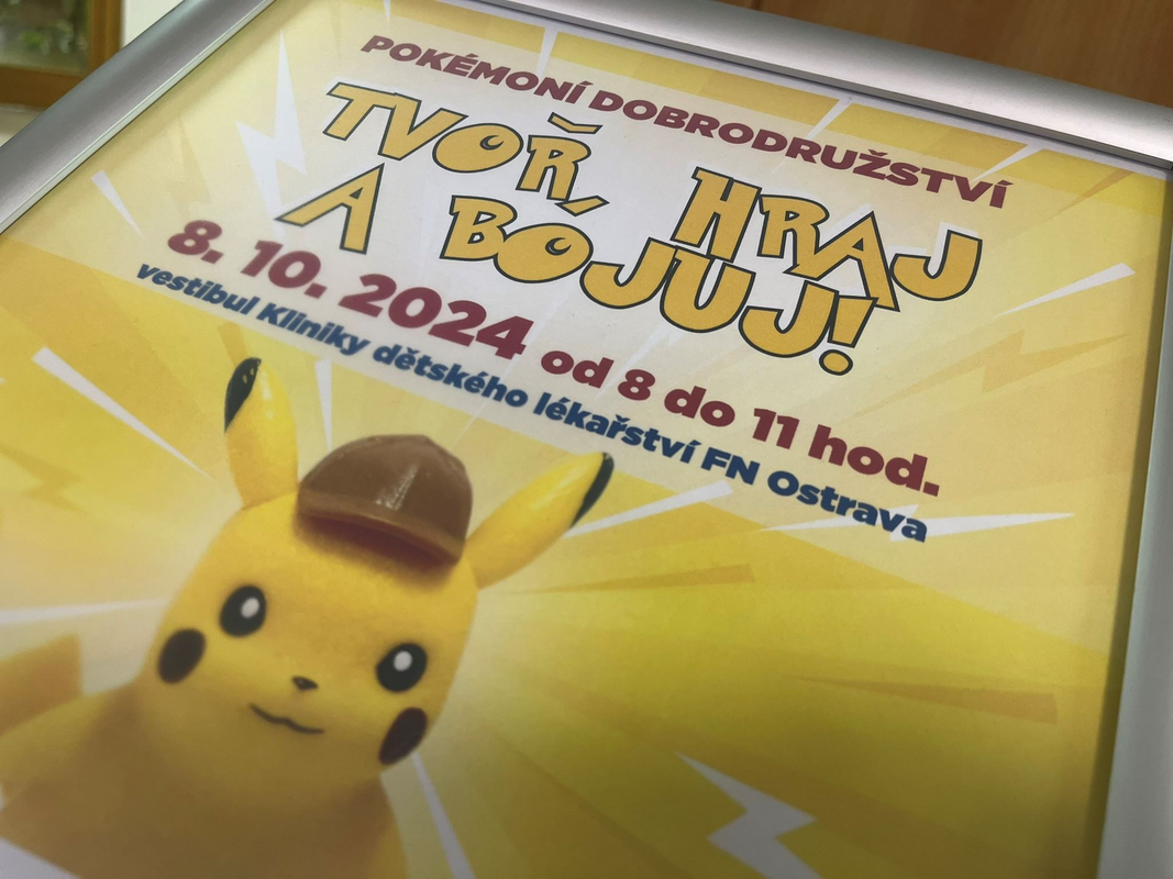 Vestibul Kliniky dětského lékařství FN Ostrava se na jedno dopoledne změnil v ráj Pokémonů. Organizátoři z neziskové organizace Haima Ostrava, která při klinice funguje a dlouhodobě pomáhá vážně nemocným dětem a jejich rodinám, připravili návštěvníkům ze všech dětských oddělení fakultní nemocnice pestrý program s názvem Tvoř, hraj a bojuj.