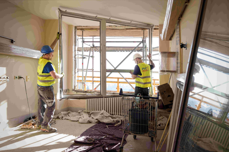 Rekonstrukce exteriéru Pavilonu L začala na konci října 2022 a na starosti ji mělo sdružení firem OHLA ŽS a. s. a BDSTAV MORAVA s.r.o. Tato část oprav vyšla na 224 milionů korun a zahrnovala zateplení střechy, „obálky“ celé budovy a také výměnu více než 500 oken. Největším zásahem do podoby objektu bylo odstranění 340 balkonů. Každý z nich vážil okolo 4 tun. „Na severní straně se u některých balkonů váha pohybovala dokonce okolo 8,5 tuny. Odřezávaly se speciálními diamantovými kotouči o průměru 1,2 metru. Byla to nejsložitější část rekonstrukce exteriéru,“ přiznává zástupce stavbyvedoucího firem OHLA ŽS a BDSTAV MORAVA Igor Sloboda.