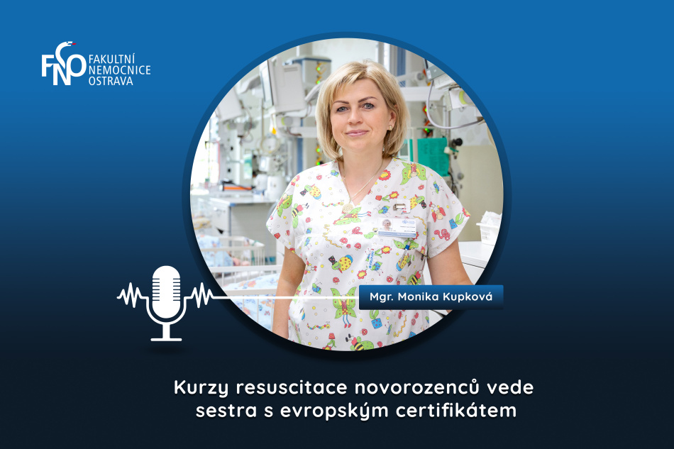 Staniční sestra Stanice intermediární péče Oddělení neonatologie FN Ostrava Mgr. Monika Kupková se péči o novorozence věnuje téměř celou svou třicetiletou praxi. Teď získala jako první nelékař v Moravskoslezském kraji evropský certifikát lektora kurzů resuscitace novorozenců. Jak náročné bylo jej získat a jak jej využije v praxi? Odpoví v podcastu FN Ostrava.