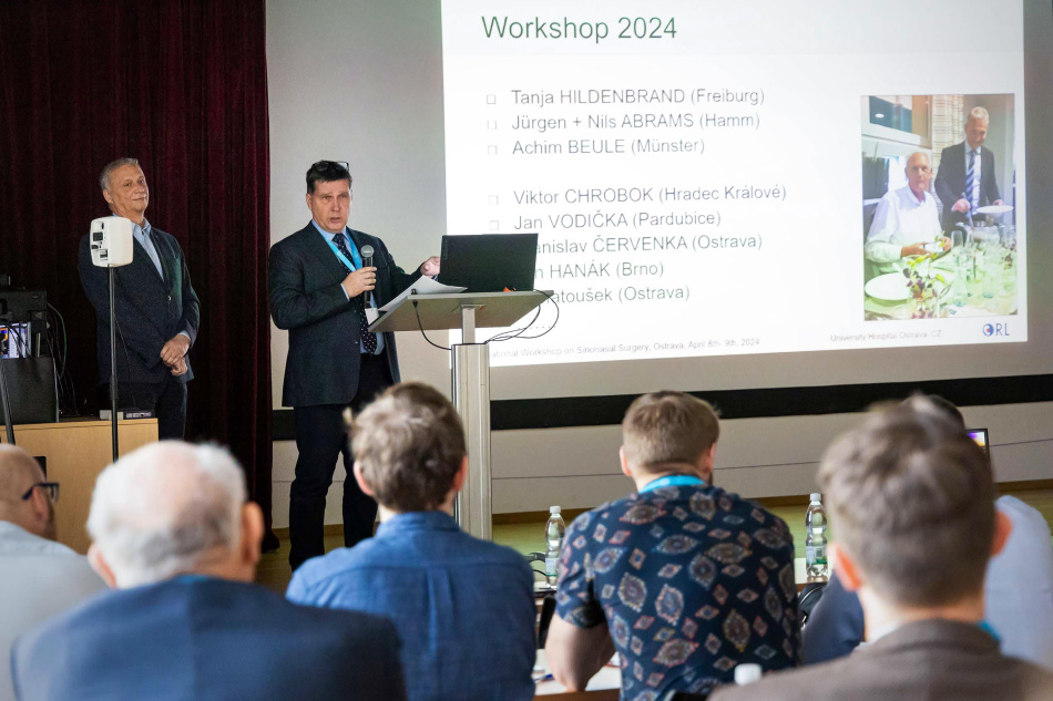 Osm desítek odborníků z České republiky a Německa přijalo pozvání na dvoudenní workshop Kliniky ORL a chirurgie hlavy a krku FNO a LF OU. V jeho průběhu mohli účastníci sledovat v přímém přenosu z operačních sálů ostravské fakultní nemocnice také 14 výkonů v oblasti nosu, vedlejších nosních dutin a slzných cest. V posledně jmenované problematice patří FN Ostrava k nejvýznamnějším evropským pracovištím.