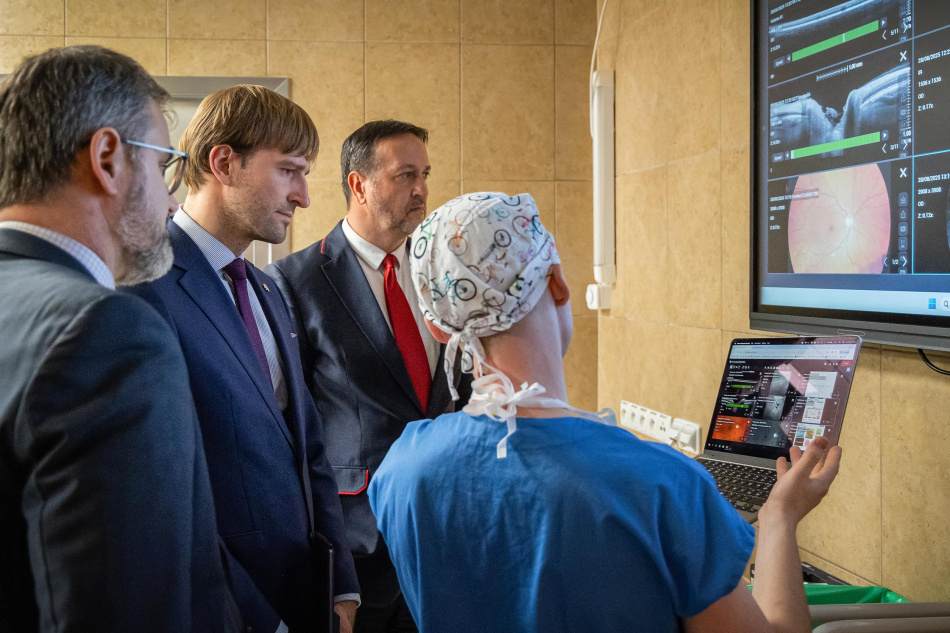Návštěvu zahájil prohlídkou zrekonstruovaného stravovacího provozu pro pacienty i zaměstnance, a poté zavítal na Oční kliniku. „Panu ministrovi jsme představili náš inovativní datový systém, který propojuje všechny vyšetřovací přístroje a pacientská data do přehledného digitálního prostředí a přiblížili jsme mu také práci s operačním 3D zobrazovacím systémem,“ popsal průběh návštěvy přednosta kliniky Jan Němčanský.