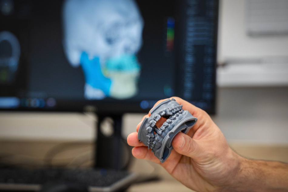 Software pracuje se třemi vyšetřeními. Základem jsou snímky z CT, na kterých jsou dobře vidět i měkké tkáně. „Dále potřebujeme vnitřní obraz zubních oblouků, který už si dokážeme díky novému skeneru vytvořit sami, a 3D fotografie. Software pomocí algoritmů na sebe jednotlivé vrstvy postupně naskládá a my jsme schopni přesně rozpoznat, kde je chyba. Kde je odchylka od normy,“ přibližuje plánování operace čelisti s pomocí softwaru MDDr. Veronika Kozakovičová, DiS. art. z KÚČOCH FN Ostrava. Na 3D tiskárně pak lékaři vytvoří model chrupu, naplánují „ideální“ postavení čelistí a zhotoví šablony. Ty jim následně umožní přenést virtuálně připravenou operaci na samotného pacienta.