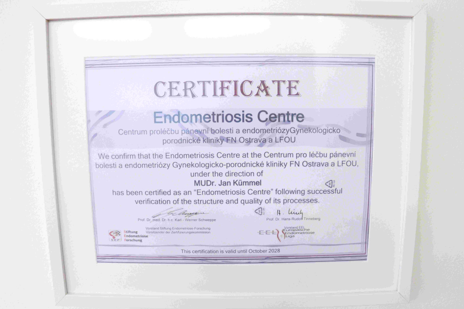 Centrum pro léčbu pánevní bolesti a endometriózy Fakultní nemocnice Ostrava úspěšně obhájilo prestižní evropskou certifikaci EuroEndoCert a zároveň získalo i certifikaci Ministerstva zdravotnictví ČR. I nadále tak patří mezi úzkou skupinu nejlépe hodnocených pracovišť v Evropě. Získání nejvyššího stupně certifikace je podmíněno vědecko-výzkumnou činností a v České republice je takových pracovišť jen šest.