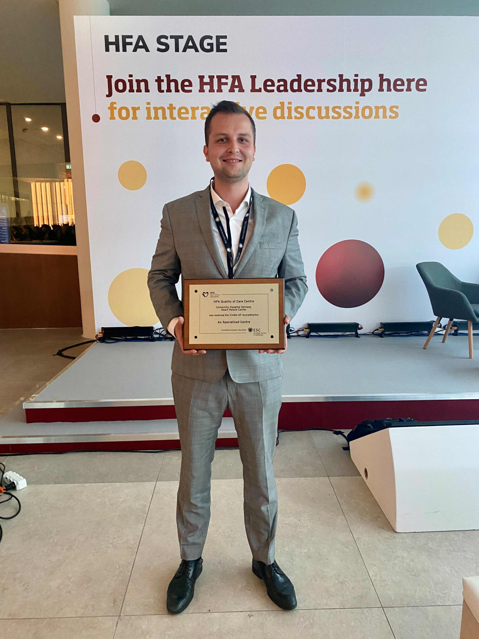Ambulance srdečního selhání Interní a kardiologické kliniky Fakultní nemocnice Ostrava se zařadila mezi špičku evropských zdravotnických zařízení. Získala prestižní mezinárodní certifikaci Quality of Care Centre in Heart Failure (Specialised Centre), kterou uděluje Evropská kardiologická společnost. Toto ocenění potvrzuje vysokou úroveň poskytované péče a kvalitu odborného týmu. Ambulance se tak stala jedním z 57 certifikovaných center v celé Evropě. Certifikát osobně převzal na kongresu v Bělehradu MUDr. Jozef Dodulík, lékař ambulance a host tohoto dílu podcastu FN Ostrava.