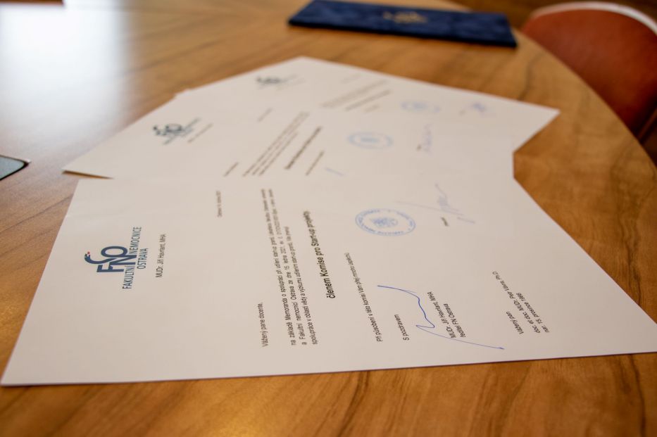 Fakultní nemocnice Ostrava udělala další významný krok k podpoře rozvoje vědy na Lékařské fakultě Ostravské univerzity. Ředitel FN Ostrava jmenoval do hodnotící komise pro posouzení žádostí o vědecké start-up granty zástupce za fakultní nemocnici. Jmenovací dekrety z jeho rukou převzali tři členové komise - přednostové klinik FN Ostrava - prof. MUDr. Pavel Komínek, Ph.D., MBA, přednosta Kliniky otorinolaryngologie a chirurgie hlavy a krku, prof. MUDr. Jan Václavík, Ph.D., FESC, přednosta Interní a kardiologické kliniky a doc.et.doc. MUDr. Petr Vávra, Ph.D., přednosta Chirurgické kliniky a současně náměstek ředitele FN Ostrava pro vědu, výzkum a výuku.