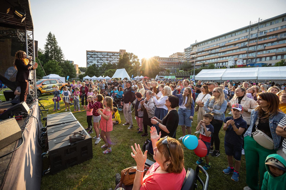 Oslavy probíhaly zároveň i ve venkovních prostorách ústavu. Během nich vystoupili na pódiu pamětníci, kteří zavzpomínali na složité začátky v roce 1975. Problémy tehdy byly například s nedostatkem personálu. „V Rehabilitačním ústavu v Chuchelné se sice tvořila takzvaná kádrová rezerva pro Hrabyni, ale děvčata se pak vdala, odešla na mateřskou dovolenou a zbylo pět sester pro nás. Personál jsme sháněli všemi možnými způsoby,“ říká první hlavní sestra RÚ v Hrabyni Eva Klusoňová. Součástí programu byl i jarmark, atrakce pro děti, ukázky hasičské a policejní techniky a večerní koncert zpěvačky Olgy Lounové.