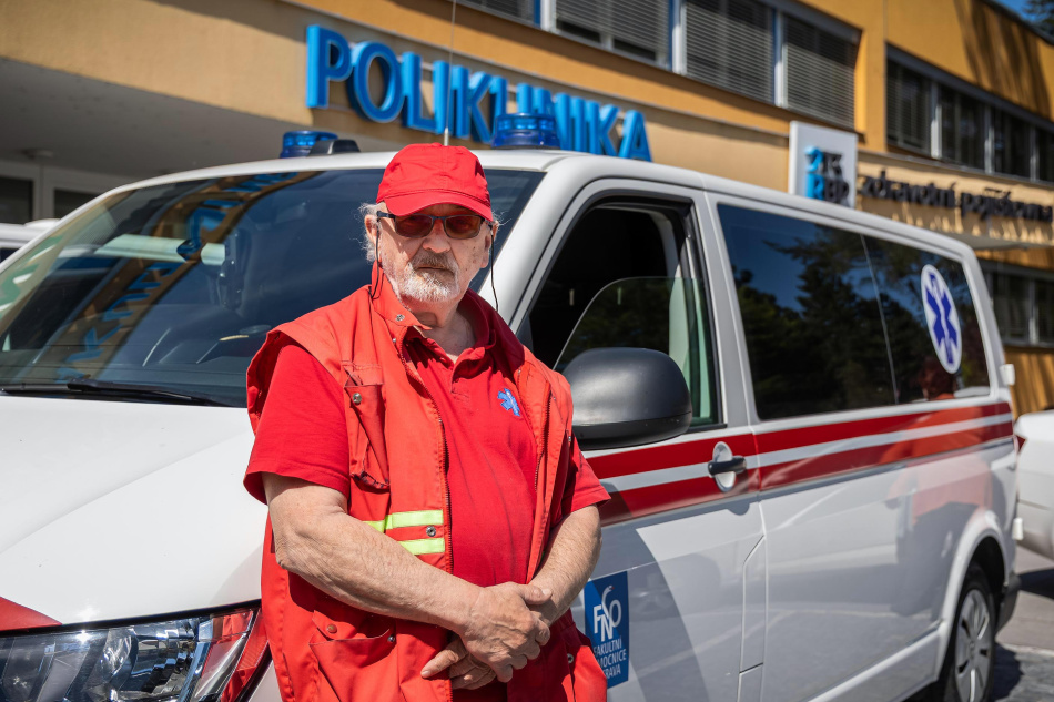 Téměř 30 let obléká červený záchranářský úbor s logem FNO Josef Tyleček. „Od pacientů vyslechnu leccos. A od těch dříve narozených je to někdy hodně smutné. Nedávno mě jedna stařenka požádala, jestli bych jí cestou nemohl koupit brambory, aby měla co obědvat.“
