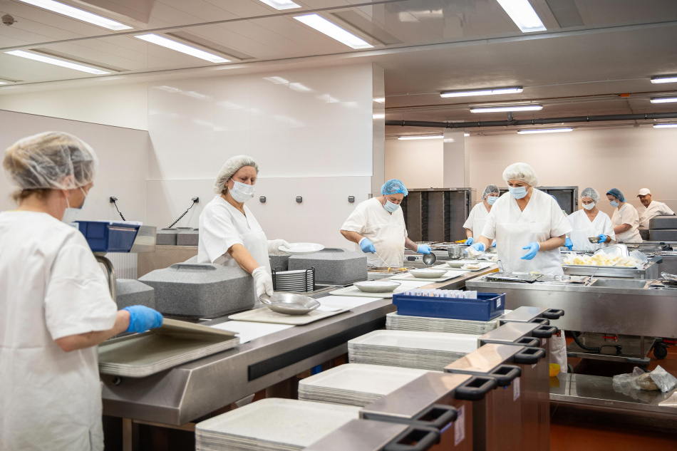 V prosinci roku 2023 se uzavřely jídelny zaměstnanců a do prostor se postupně přestěhovala vývařovna. „Personál kuchyně začal pracovat ve třísměnném provozu. Ranní směna zajistila stravu pro pacienty, odpolední uvařila v průměru 2 500 obědů pro zaměstnance a noční směna ji pak šokově zchladila a zabalila,“ popisuje provoz kuchyně během rekonstrukce Ing. Jaroslava Jaššová, MBA, vedoucí Oddělení léčebné výživy a stravování FN Ostrava.