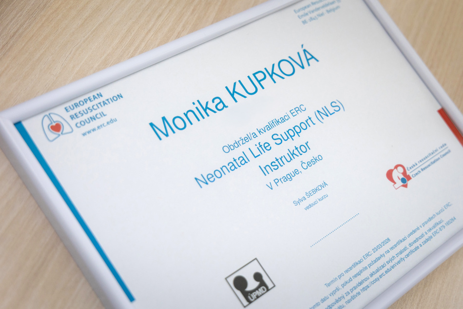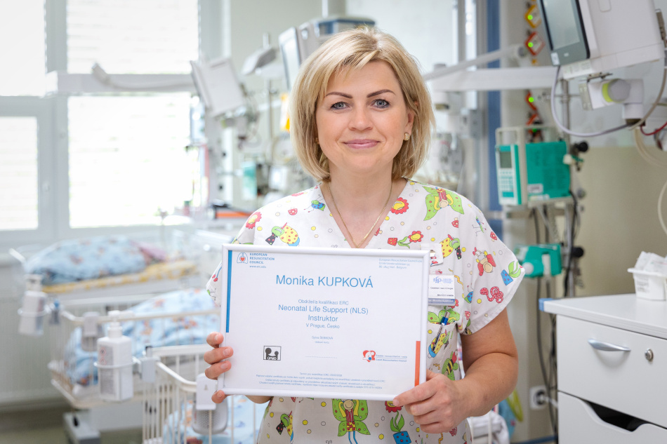 Péči o novorozence na Oddělení neonatologie věnuje Mgr. Monika Kupková celý svůj profesní život a své odborné znalosti si zvyšuje pravidelně. „Získání certifikátu je samozřejmě završením nemalého úsilí, ale nejdůležitější je pro mne možnost dále tuto dovednost školit a přispívat tak k dalšímu zvyšování úrovně personálu, a to nejen na našem pracovišti.“