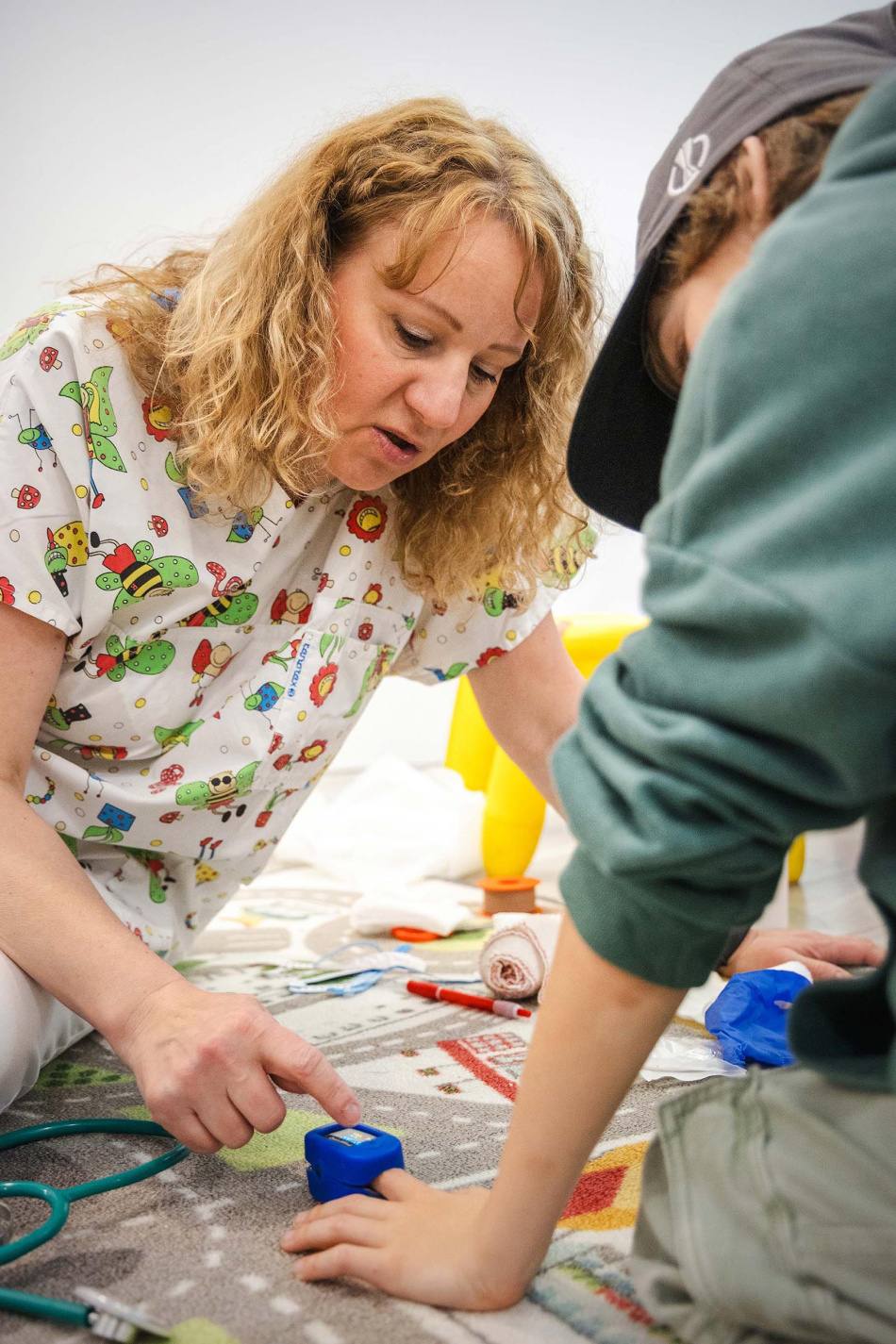 Akce Týden prevence dětských úrazů, která proběhla minulý týden v Avion Shopping parku, měla skvělou odezvu jak u dětí, tak i u rodičů a veřejnosti. Sestřičky z Centra dětské traumatologie a chirurgie FN Ostrava proměnily jednu z prodejních kójí v nemocniční pokoj a děti si tak mohly vyzkoušet například ranní vizitu a zahrát si na pana doktora. Mohly si změřit tlak, saturaci, poslechnout srdce a rozhodnout si o postupu péče. U stolu pak byla simulována výuka s paní učitelkou, která chodí za dětmi na oddělení. Zkrátka děti viděly, jaké jsou celodenní aktivity a péče v centru. Lákadlem byli také canisterapeutičtí psi, kteří na oddělení pravidelně docházejí. V sobotu přibyl i nemocniční klaun.