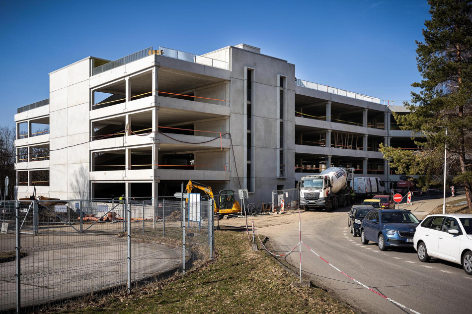 Uzavírka průjezdu kolem parkovacího domu