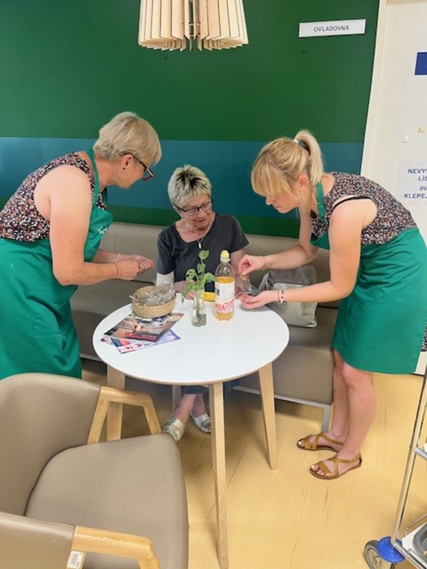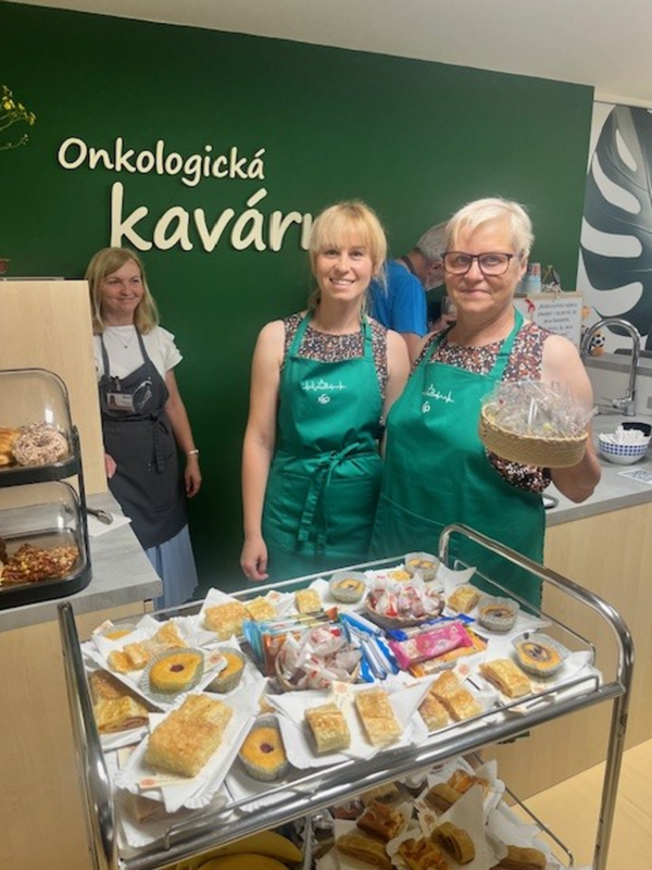 „Den pro onkologické pacienty“ – dne 19.6.2025 navštívila naší Onkologickou kavárnu paní Lenka Beranová a její maminka paní Dagmar Beranová. Obě dámy připravily pro pacienty Onkologické kliniky bohaté občerstvení včetně bezlepkové varianty navíc se rozhodly obdarovat pacienty „pavoučkem pro štěstí“, který pochází z dílny paní Beranové. Paní Beranová provozuje výrobu drobných šperků https://www.vyrobenoodsrdce.cz/projekt-kolibrik/ a naší Onkologickou kavárnu podporuje dlouhodobě.