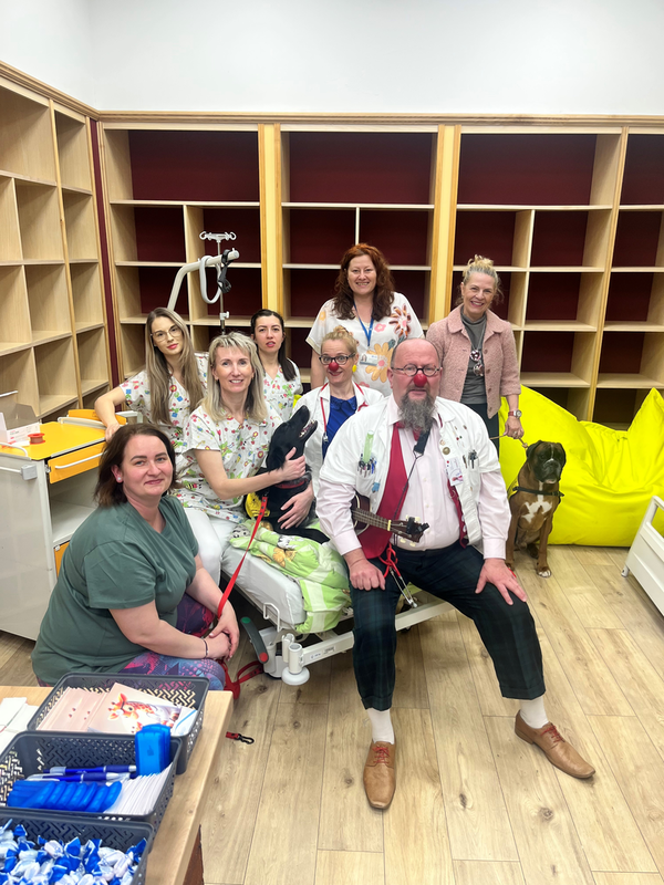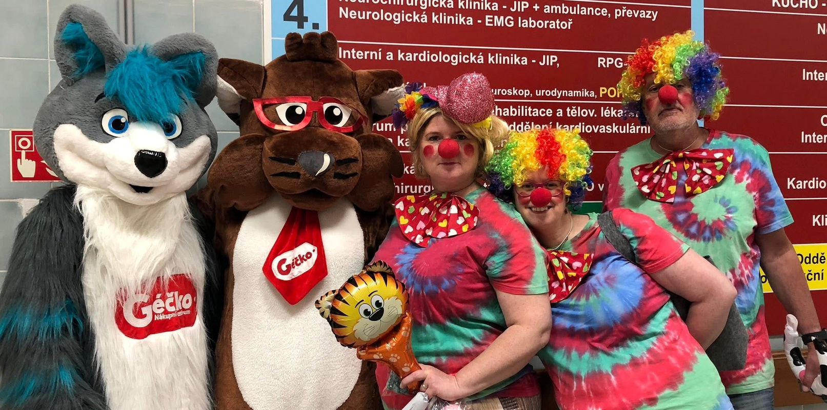 „Dětský den ve FN Ostrava – akce se konala dne 30.5.2025 a náš dobrovolnický tým složený z týmu „tvořivých dam“, canisterapeuta a jeho psího parťáka Gastona, dále pak z klaunů ze spolku „UŽÍVEJ DEN“ a maskotů našeho významného partnera Nákupního centra Géčko, připravil pro naše hospitalizované děti nezapomenutelný den plný zážitků. Tento tým navštívil děti na těchto pracovištích: Oddělení popáleninové medicíny a rekonstrukční chirurgie, Centrum plastické chirurgie a chirurgie ruky, kliniku ORL, Centrum dětské traumatologie a chirurgie, Kliniku ústní, čelistní a obličejové chirurgie a Kliniku infekčního lékařství. Děti si užily tvořivých dílen, seznámily se s činností canisterapeuta a klauni spolu s maskoty děti obdarovali drobnými dárky od našich partnerů a donátorů. Program pro hospitalizované děti na Klinice dětského lékařství a Oddělení dětské neurologie připravil spolek HAIMA Ostrava.